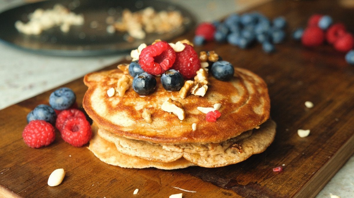 Stack your pancakes and top with your favourite toppings — we recommend a handful of berries, chopped nuts, and a drizzle of Sugar-Free Syrup.