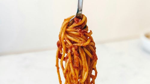 - Pasta (carbs) with shrimp (protein), side salad with vinaigrette (fat)