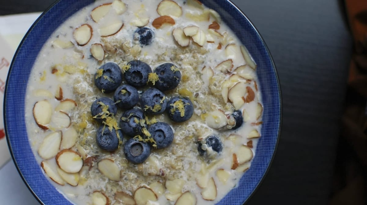 Note: The reason you let the porridge cool down and then use 25ml of milk is because you don’t want to add the protein right away — or worse, cook it together with the porridge — as this will likely curdle the mixture and you want your porridge to be nice and creamy.