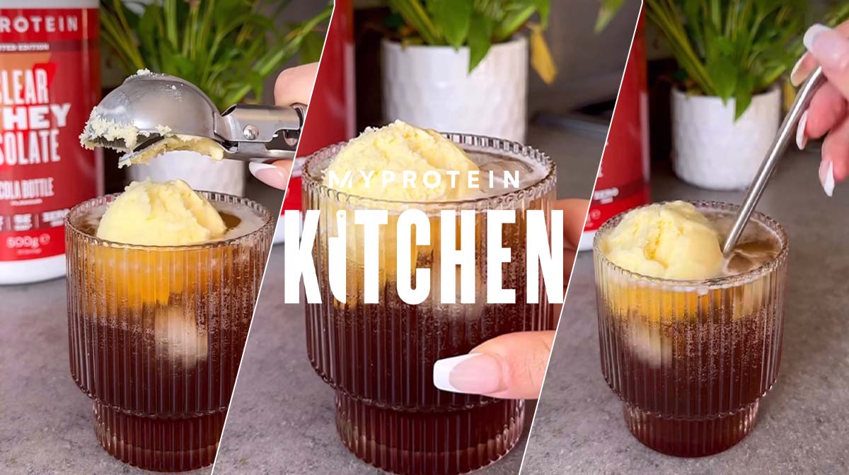 Whether you’re looking for a slightly more indulgent way to enjoy your protein post-workout or you’ve got some friends coming over for a garden HIIT session in the sun and want to make sure they hit their protein goals in most refreshing way possible — a Cola Bottle Clear Whey float should be at the top of your list of recipes.