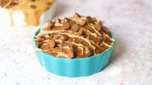 Once baked, top with a drizzle of melted peanut butter and a sprinkle of choc chips. Dig in!
