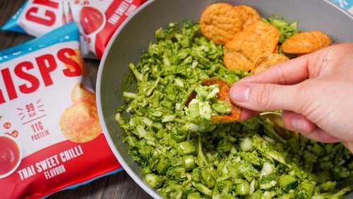 This dish is the ultimate lunch — sticky, sweet and incredibly vibrant. It features savoury halloumi glazed in a chilli honey mixture, served on a fluffy, hummus-topped flatbread with juicy cherry tomatoes and fresh rocket leaves.