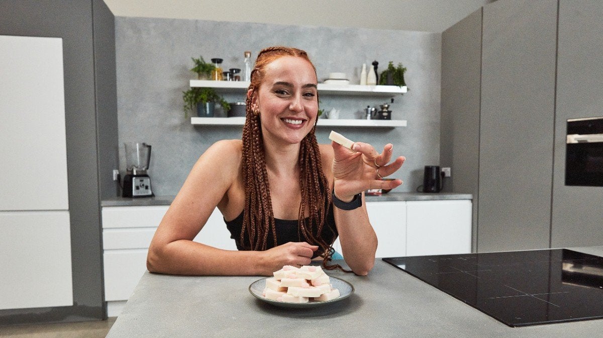 is keeping things light, simple, and delicious with these Clear Whey jelly sweets. They taste like a blast from the past. She uses Jelly Belly’s iconic Bubble Gum flavour, but feel free to try out any of the other new flavours in the range — Tutti-Fruitti, Green Apple, Berry Blue or Very Cherry.Servings:  Makes 16