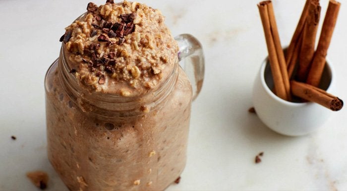 Soaking your oats overnight means they get super swole and pudding-like — great for a grab-and-go breakfast. We love a dash of cinnamon and a dollop of almond butter in ours, but why not try your favourite variation of mix-ins and toppings for your very own version?