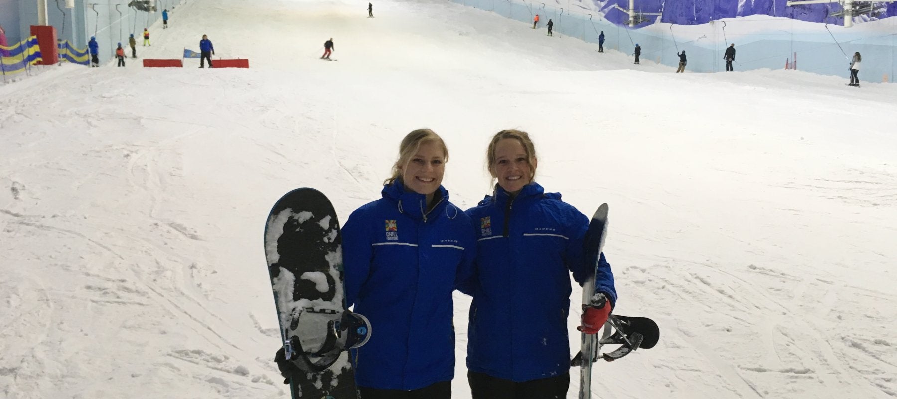 As soon as we walked through the doors, we were met with a bustling indoor ski village, complete with restaurants and shops. After collecting our coats, trousers, boots, and boards, we were ready to meet our instructor and hit the slopes — or so we thought.