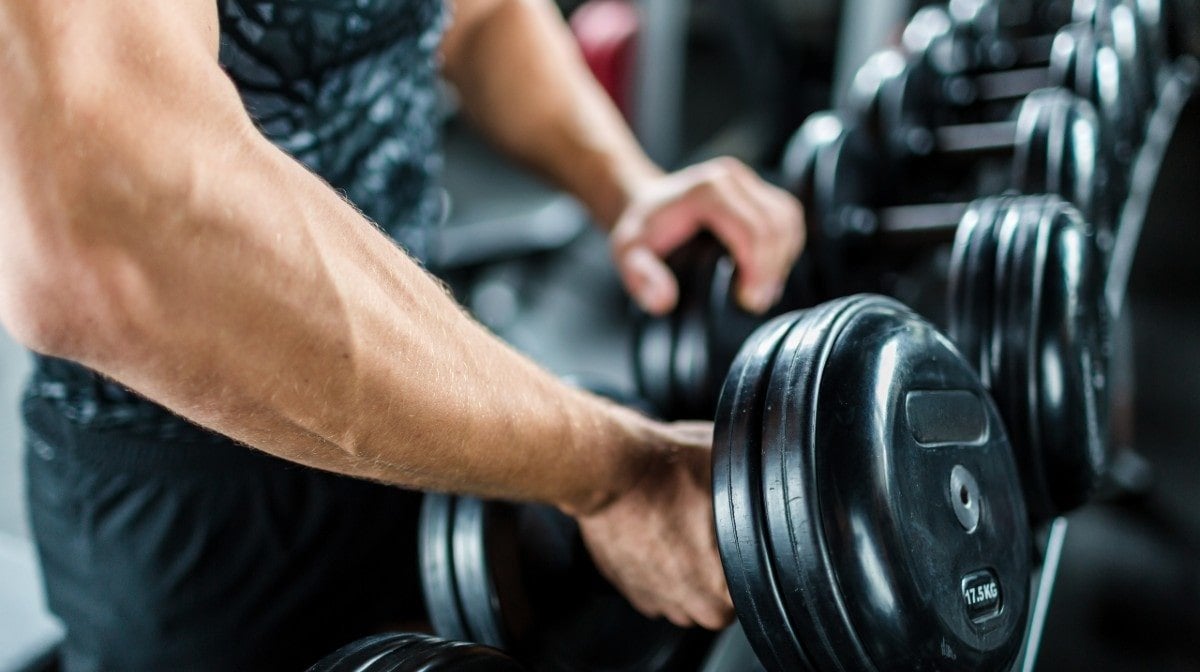 - Curl the dumbbells towards your shoulders, keeping your palms inwards